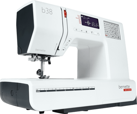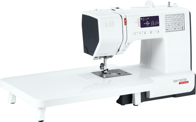 The bernette 38 is the top model in the bernette 30 series. This computerised sewing machine offers a wide range of functions at an affordable price–leaving nothing to be desired. It offers 394 different stitches, including the stretch stitch for elastic fabrics. This means you can create fantastic T-shirts from jersey fabric, for example. The bernette 38 also has eight different 1-step buttonholes and three alphabets. In addition, it has a memory function, via which you can store various combinations of patterns. The bernette 38 has a useful speed regulator, which can be adjusted on the display. As the top model, this impressive sewing machine also has a bright LED sewing light, a threader and both an automatic and a manual thread cutter. The bernette 38 comes with eight different presser feet (soles) and a large extension table as standard.