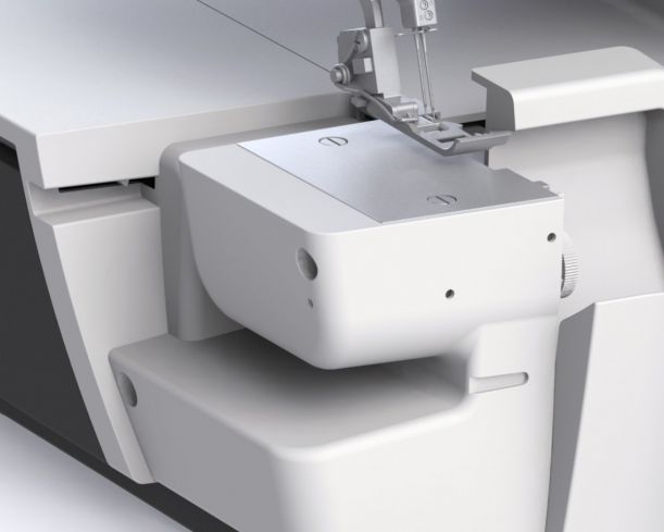 The 130 mm space right of the needle gives overlocking another dimension. The large working area is ideal for leading and catching heavy sewing projects behind the needle and gives you the space for all tasks in the needle and looper area: changing the presser foot, attaching upper looper converter and much more.