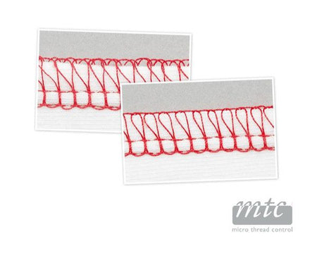 Used for the first time on a bernette machine, the mtc Micro Thread Control (mtc) saves you significant time and effort while ensuring consistent high-quality stitches, since you need only set thread tension once – even if you alter the cutting width and fabric thickness!