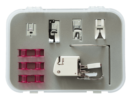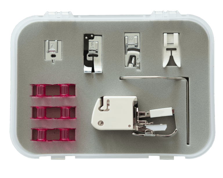 A carefully selected set of presser feet helps you handle a wide variety of materials – from delicate fabrics to thicker materials like faux leather or thermoplastics. The Walking Foot ensures smooth fabric feed, even when layering challenging textiles.