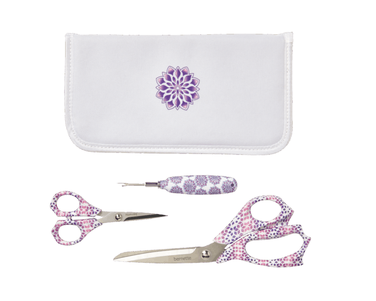 A matching scissor kit by Yaya Han – including fabric and embroidery scissors plus a seam ripper – brings her signature design right to your hands