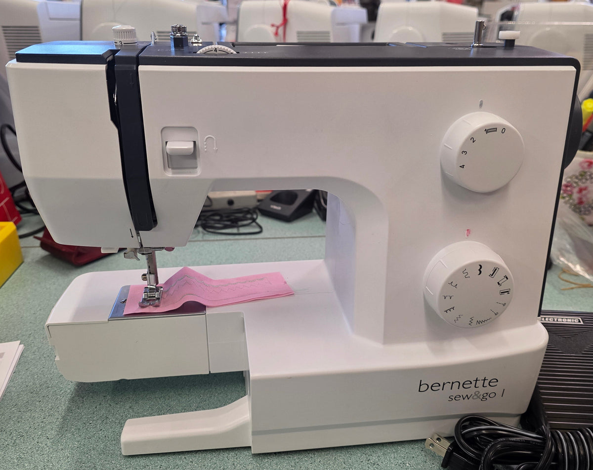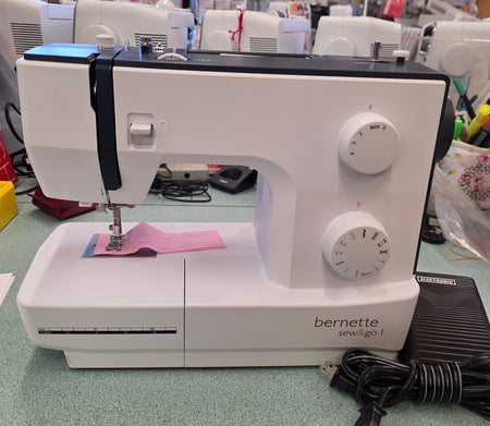 The bernette sew&go 1 is a mechanical sewing machine and the entry model for the sew&go family. With 10 stitches and a maximum stitch width of 5 mm, it provides excellent basic functions at a very economical price. Clearly designed and easy to operate, it‘s perfect for beginner sewers. There are four presser feet (soles), including the buttonhole foot and a zipper foot, come as standard with this model.