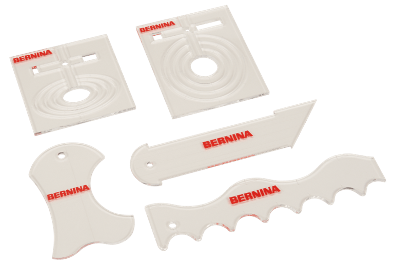 The Essential Ruler Kit is suitable for all BERNINA sewing machines and for the BERNINA Q Series Longarm machines. In combination with the Adjustable Ruler Foot #72/72S or Ruler foot #96 , the kit can be used to create decorative quilting patterns such as waves, circles or mini straight lines. These ¼" thick rulers have fabric-gripping technology to help keep them in place while you stitch. Marked guidelines make it easy to align your ruler for repeating motifs.