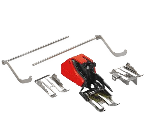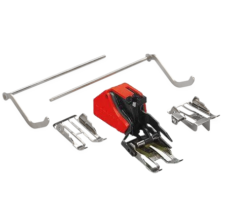 Three-Sole Walking Foot with Seam Guide #50 features a standard sole, a special quilting sole, and a sole with a central guide for edgestitching and stitching in the ditch. In addition, its two seam guides help you sew accurately. The result: projects with consistent stitching and perfectly matched patterns.