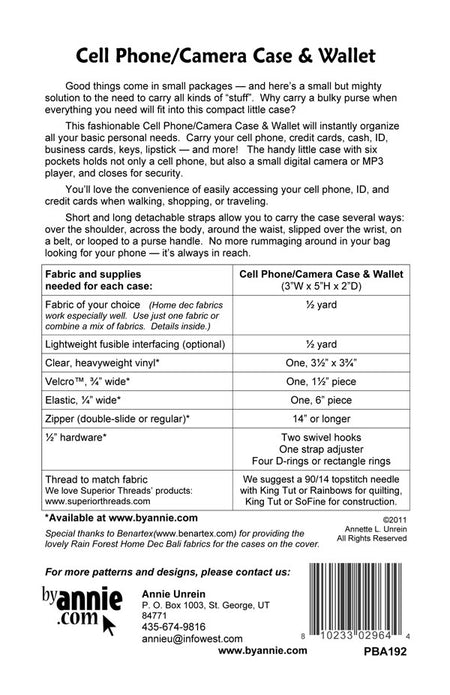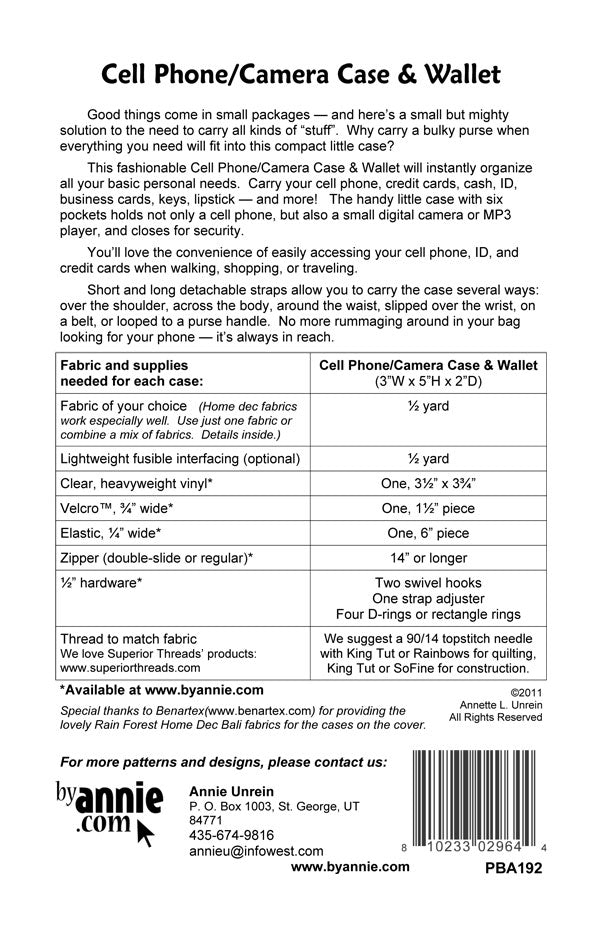 Cell Phone / Camera Case & Wallet by Annie pattern