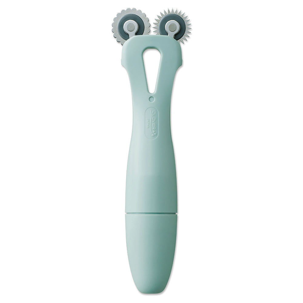 The CLOVER Grip Fit Triple Tracing Wheel is a versatile, ergonomic tool designed for precision and convenience in fabric marking. Measuring 43mm (1 11/16 in) x 153mm (6 in) x 28mm (1 1/8in), this tool includes 3 interchangeable wheels-smooth, serrated, and blunt-allowing you to switch effortlessly between styles. The clever design even lets you store the wheels within the handle for easy access. Ideal for professional crafters and designers, this Triple Tracing Wheel ensures comfort, accuracy, and adaptability, making it an essential addition to any toolkit.