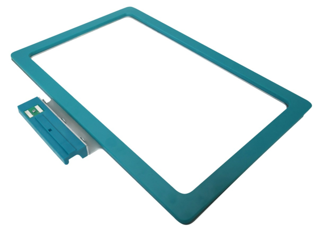 Snap Hoop Monster bernette L includes a flat, magnetic top frame and a metal bottom frame. There is a machine attachment on the bottom frame that your embroidery machine will recognize. Simply place the stabilizer and fabric over the bottom frame and snap the top frame into place!