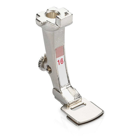 Gathering Foot #16 is available in two different widths. The wider version is designed for use with sewing machines with a stitch width of up to 9 mm.