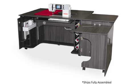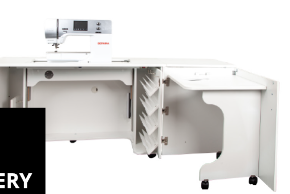 This cabinet perfectly accommodates BERNINA machines from the 4, 5, 7 and 8 Series. Its perks are