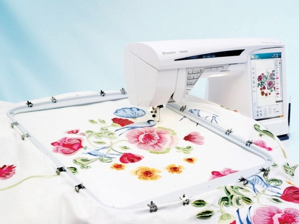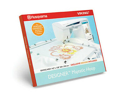 The extraordinary DESIGNER™ Majestic Hoop measures 360 x 350 mm (14 ¼" x 13 ¾") and includes exclusive bonus embroidery designs.