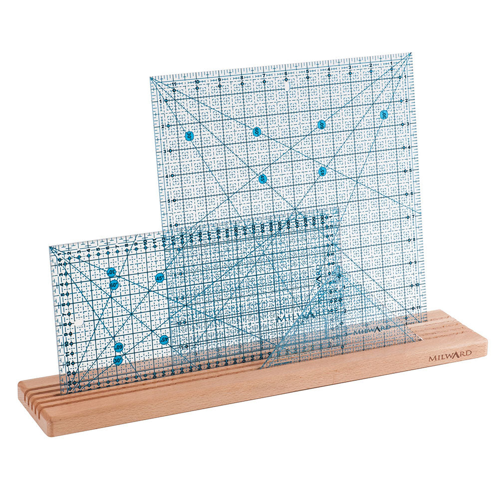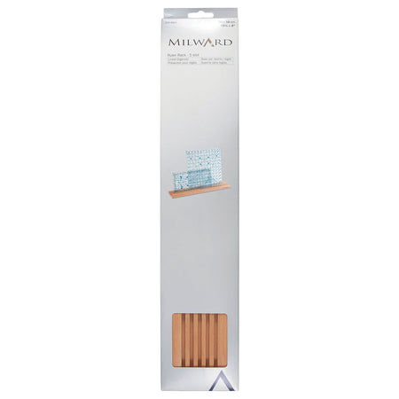 The perfect solution for the secure storage of quilting rulers or templates, ensuring easy access while reducing the risk of damage. Crafted from exquisite and long-lasting beech wood and features a laser-etched Milward logo. In plastic-free packaging. Dimensions: 50cm (193⁄4"") x 10cm (4"").