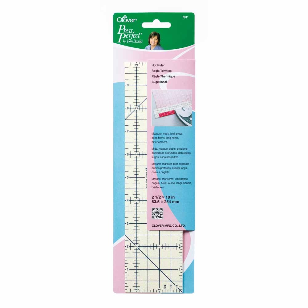 Use the Hot Ruler to measure, mark, fold, press: deep hems, long hems, miter corners. Perfect size Ruler for large tasks at the pressing station. Keep this handy ruler by the iron to measure, mark, and press.