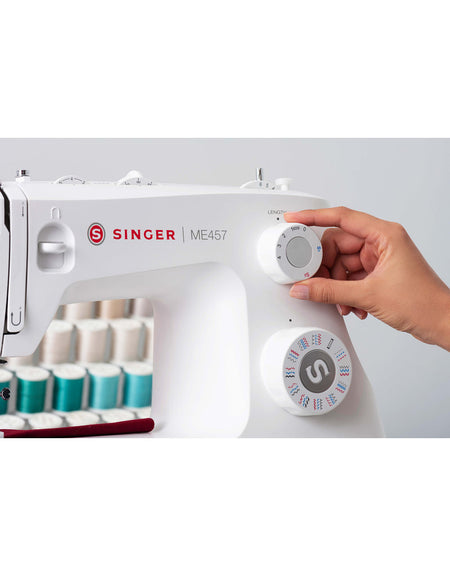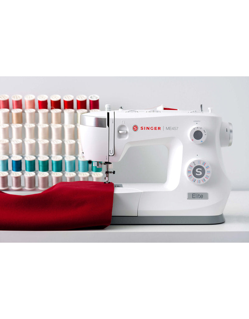 The sturdy, full-metal frame of the SINGER ® Elite ME457 - Mechanical Sewing Machine provides the steady support and the long-lasting durability you expect from the SINGER® brand. Even at top speed, you can count on consistent results with each new stitch.