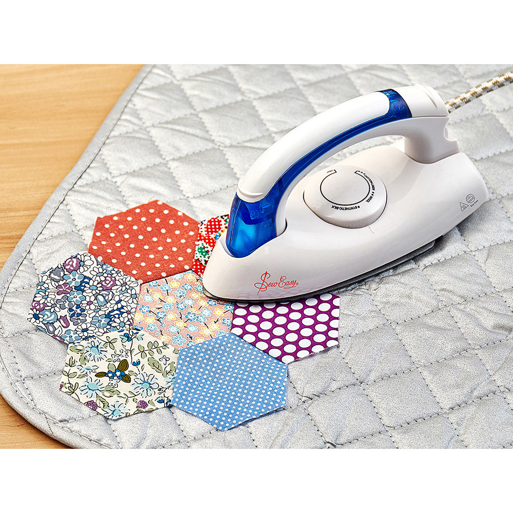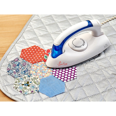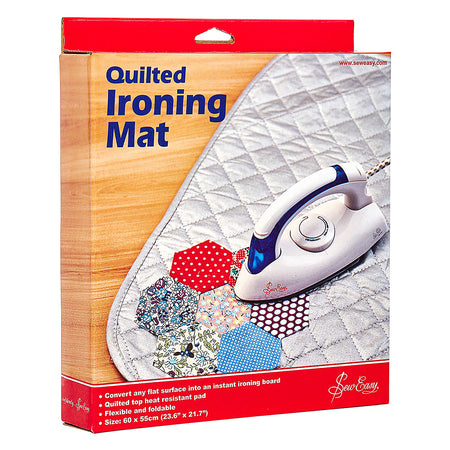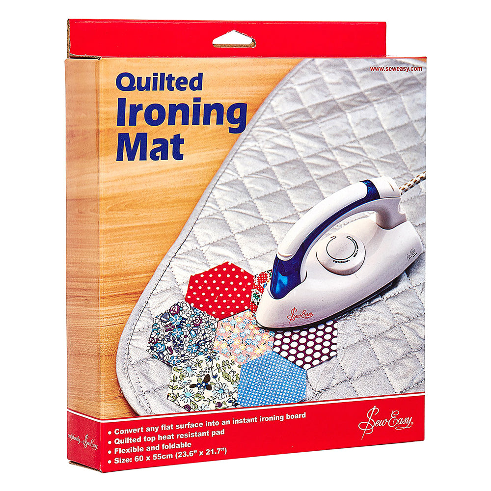 Convert any flat surface into an instant ironing board. Perfect for quilting and quick presses. Works on top of washing machines, kitchen tables, floors, etc. Quilted top heat resistant pad is flexible and foldable. Mat size: 60 x 55cm (23.6″ x 21.7″).