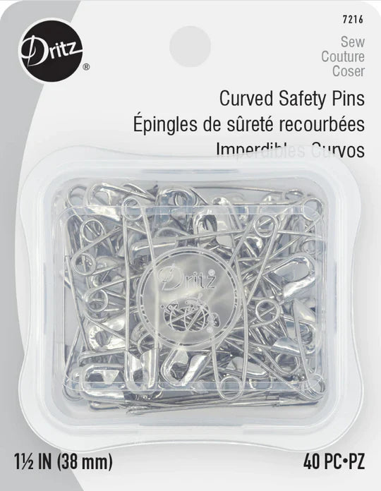 Dritz Curved Safety Pins easily penetrate fabric. They are easier to use than straight safety pins for quilt basting and have just the right angle for easy penetration of quilt layers with no shifting. These rust resistant pins can be used for many sewing, quilting, crafts, jewelry making and general household use. Size 1 safety pins are recommended for low loft batting.