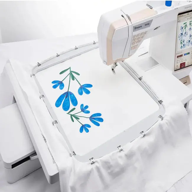 The Mega Turnable Hoop has the largest embroidery area in the industry and a redesigned inner hoop to give improved grip while embroidering.