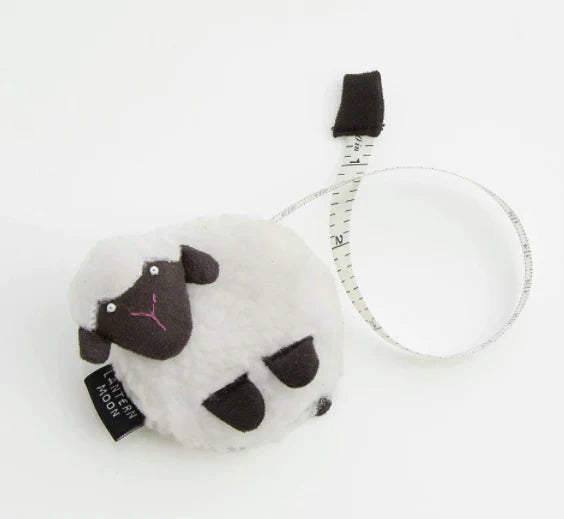 This whimsical woolly sheep tape measures is cuddly, covered in black fleece and totally adorable! Metric and English measurements are shown on opposite sides of a 5’ long retractable measure - so it is as functional as it is cute!