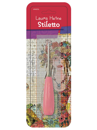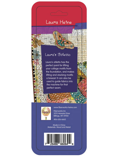The Laura Heine Stiletto and scoring tool is the perfect gadget for collage quilting. This Laura Heine collage tool is great for lifting the motifs for fabric placement and is also useful for scoring paper along the seam.