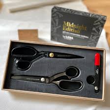 Our Midnight Edition Fabric Shears are made out of carbon steel. Our Midnight Edition Pinking Shears and Thread Snip are made out of stainless steel.