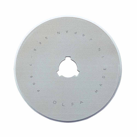 Choose OLFA's largest rotary blade for more heavy-duty projects. The tungsten tool steel blade cuts up to eight layers of fabric at a time. This blade is super sharp right out of the package and stays that way longer, thanks to its high-quality construction. Good For: cutting strips, multiple layers and finishing quilts prior to binding. Cuts fabric, paper, tarp, vinyl, upholstery, leather and other thick textiles. Made from high-quality tungsten tool steel. Fits any OLFA 60mm Rotary Cutter.