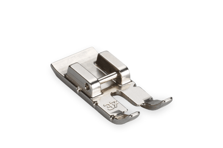 In addition, Patchwork-foot sole #37 features three evenly spaced markings (1/4” apart) on its side that make  the square insertion of pieces in patchworking easier. A narrow groove under the flat sole serves as a thread channel for smoother piecing.