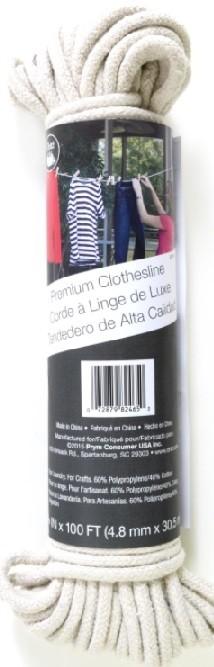 Premium Clothesline, 3/16" x 100 ft. (4.77mm x 30.48M), 60% Polypropylene / 40% Cotton
