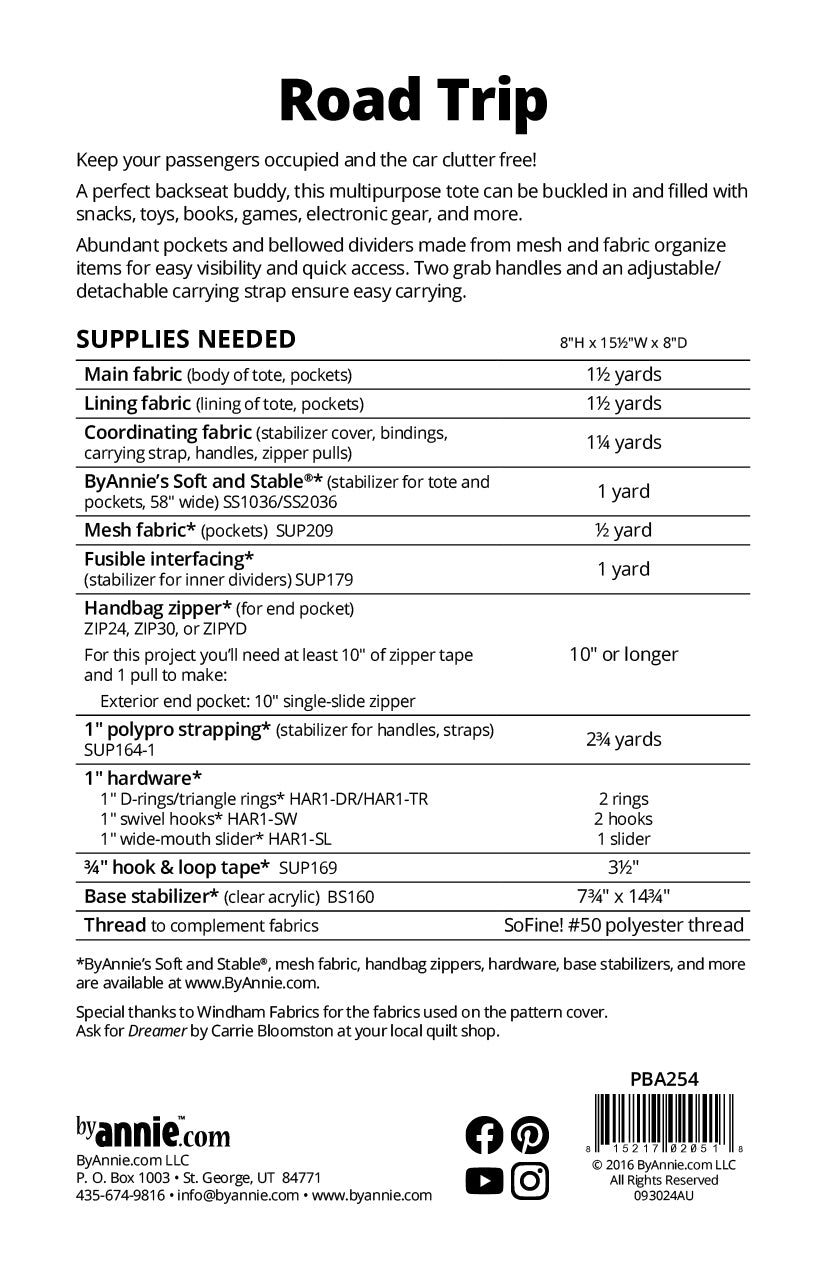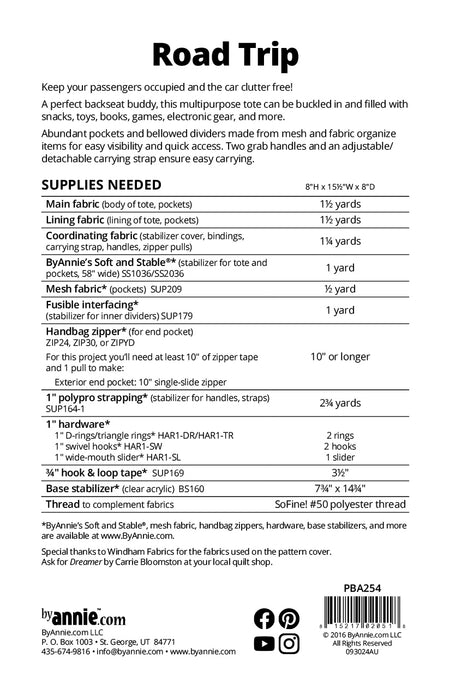 Road trip by Annie multipurpose Organizer Tote Pattern