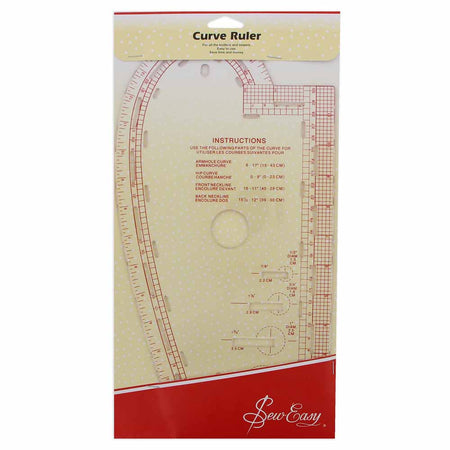 For knitters and sewers. Easy to use and saves time and money. An essential tool for marking buttonholes and seam allowances, tracing and reproducing diagrams for knitting patterns, altering waist, hips and crotch of patterns and changing necklines and hems. The ruler curve works perfectly for rounding out square corners on collars, cuffs, pockets, etc. Metric and imperial measurements. Suggested uses: straight ruler, square ruler, french curve, buttonhole guides, seam allowance slots at 1.5 or 2.5 cm (5/8″ or 1″).