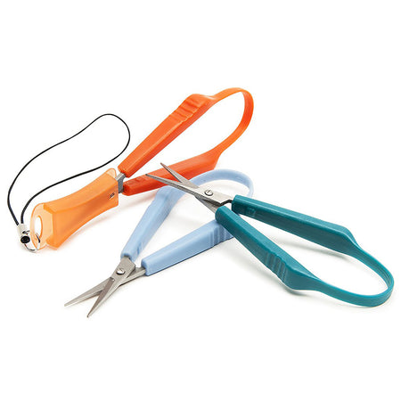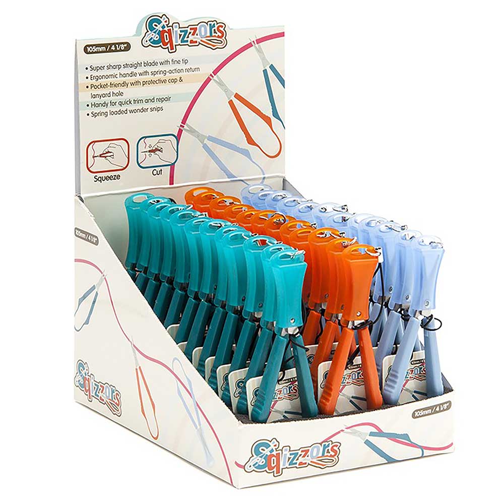 4 1⁄8″ (10.5 cm) fine tip, super sharp, straight blade thread snippers. Ideal for quick trims and repairs; simply squeeze and cut. Ergonomic handle with spring-action return reduces hand fatigue. Includes protective cap and lanyard hole for easy and safe storage.