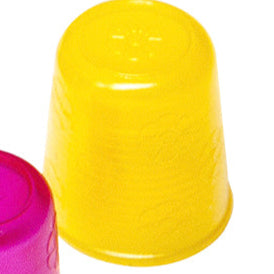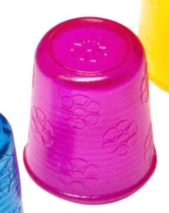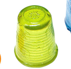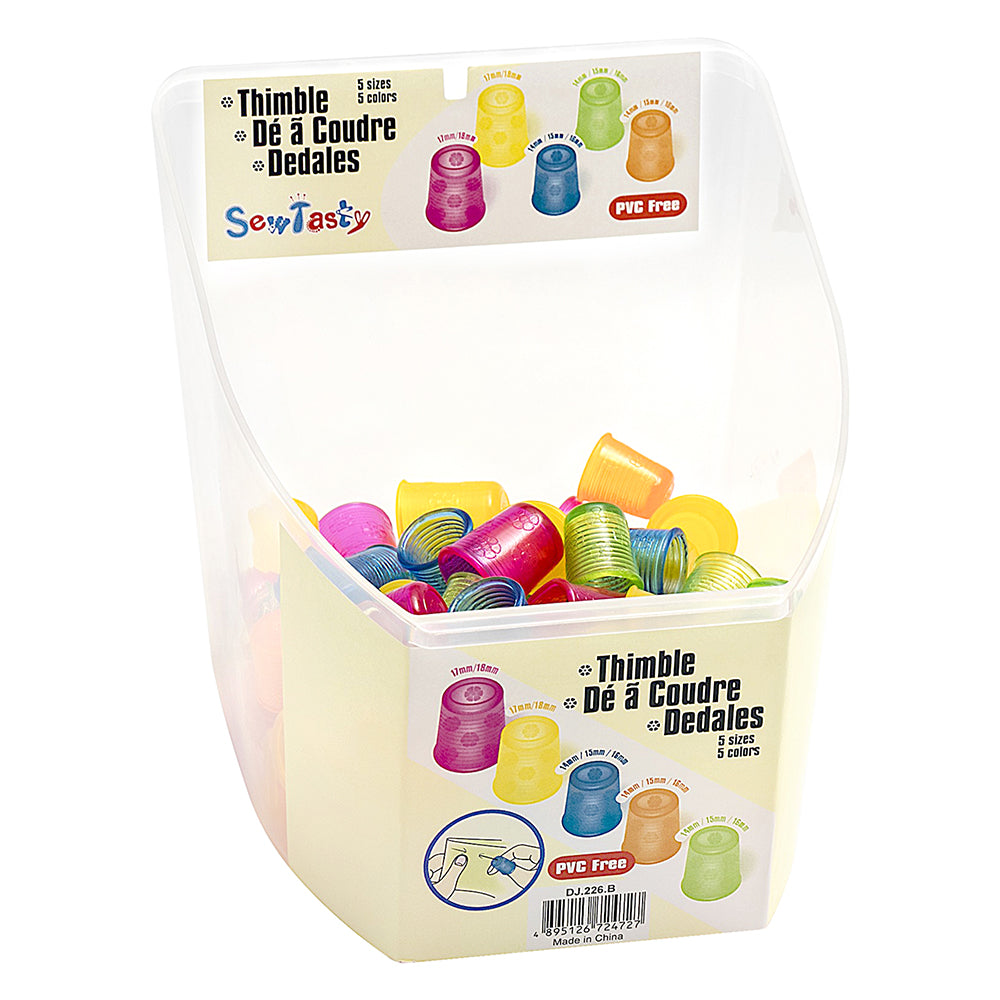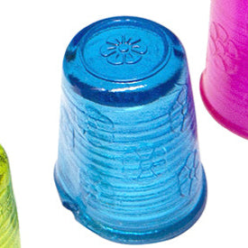 PVC free rubber thimbles. Comes in 5 different sizes - 14, 15, 16, 17 and 18. Five assorted colours - translucent green, blue, orange, pink and yellow. Thimbles have a soft feel and are pliable to fit different finger sizes. Lightweight and comfortable with a super thick rubber at the tip for protection.