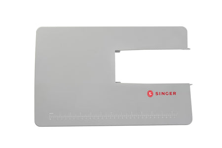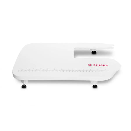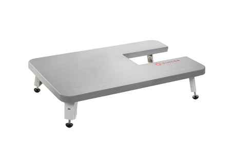 Simply take off the removable storage compartment to access the machine’s free arm, then slide the Extension Table onto the machine. Dimensions: 15 ¼” x 10” or 38.8 x 25.4 cm.