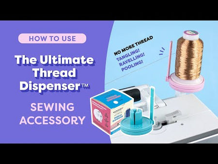 The Ultimate Thread Dispenser™️ is a unique sewing accessory that greatly improves the thread draw and tension during sewing. With the combination of the rotating base and thread guide, it promotes a consistent and even thread draw that is especially useful for tangled or slippery threads, or threads with a high memory such as metallic. This device can be used with any thread type, but you’ll see the largest benefits with slippery threads and metallic threads. Fits all mini king cone spools from WonderFil.