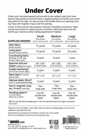 The pattern and Add-on Video include instructions for measuring your machine and making adjustments as needed to fit your particular machine.