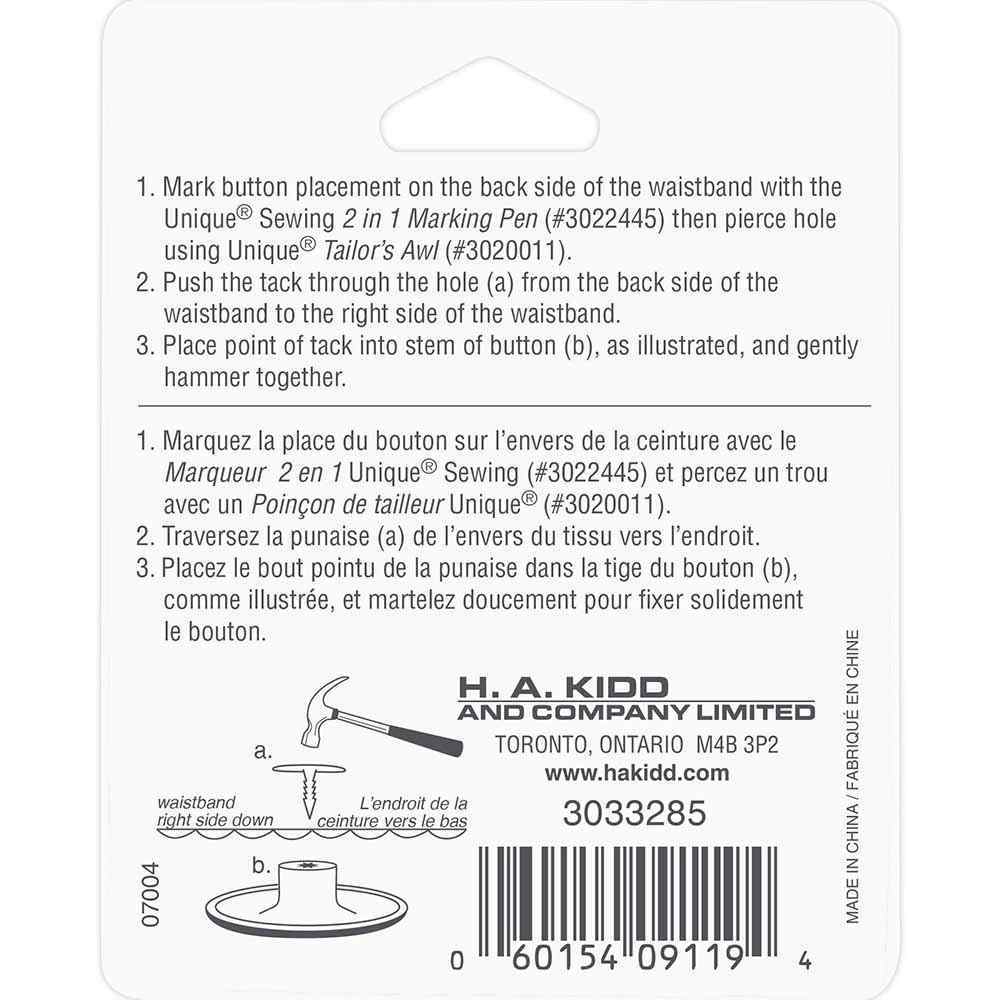 A ″no-sew″ jean button. All you need is a hammer to pound the tack into the button head.