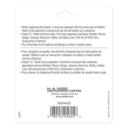 Fits all Singer Class 15 models and some of the following other machines: Baby Lock, Brother, Riccar, Simplicity, Domestic, Universal, Kenmore, Necchi and Janome. Use only the same type (metal or plastic) of bobbin that came with your machine.