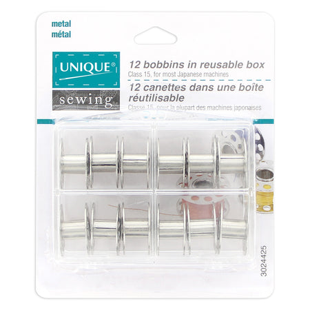 UNIQUE SEWING Metal Bobbins in Reusable Box - 12pcs