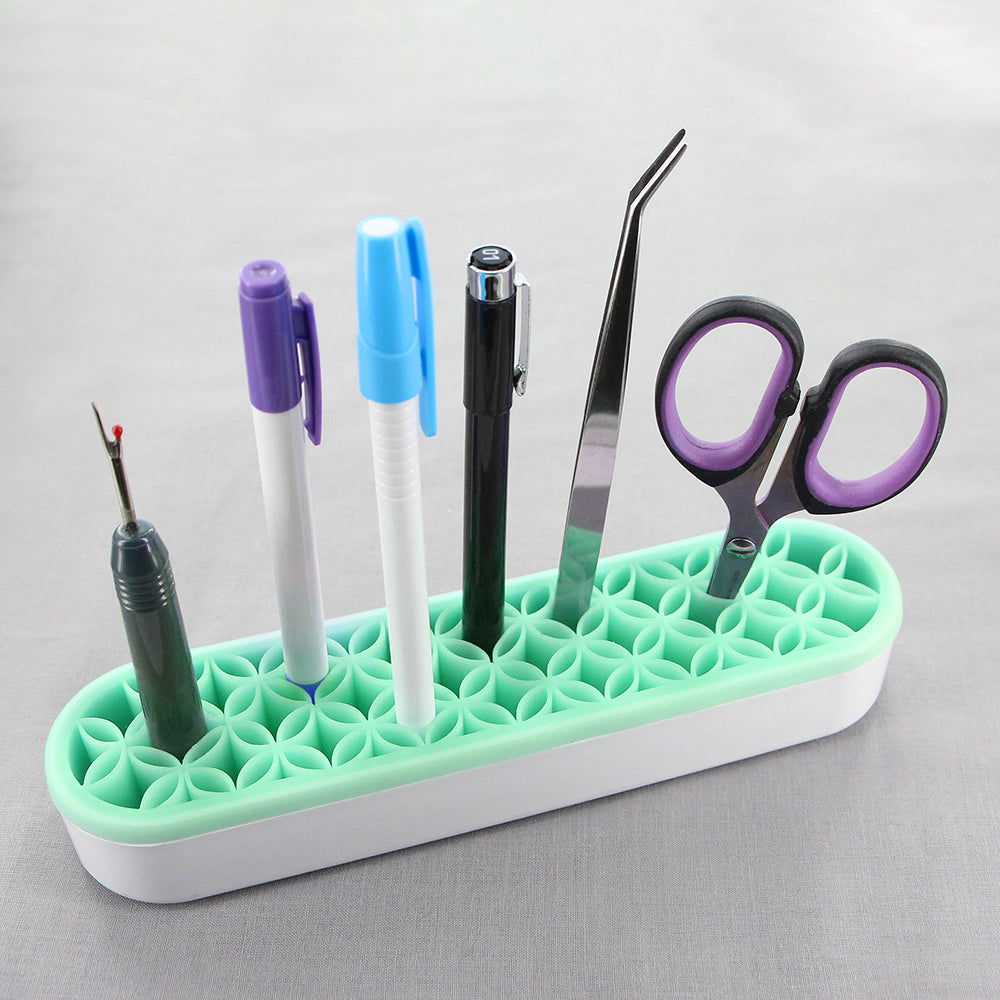 Easily store marking tools, scissors, stilettos, rulers, even brushes and small rotary cutters. - Crafted from premium silicone and lightweight plastic, ensuring durability and easy maintenance - Helps you store and find sewing tools quickly - Silicone top is detachable & easy to clean - An ideal gift choice for family, friends or colleagues - 21cm x 5cm x 3.3cm (81⁄4″ x 2″ x 11⁄4″